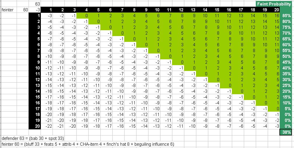 - "IB builds builds using feint to apply bleeding wounds don't account for the fact that feint allows only a single attack in the round in which it is applied, applies only to a single opponent, can be resisted, and lasts a single round.